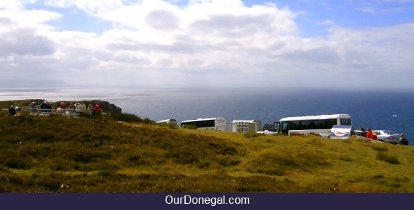 Tour buses at Slieve League's Bunglass viewing pointIf you feel this walk is too strenuous you can actually drive all the way to the viewing point, where you'll find a small parking area.